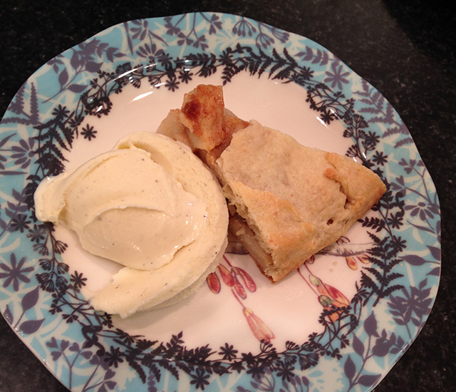 Bake the crostata for 25 minutes, until the crust is golden and the pears are tender. Allow to cool. Serve warm or at room temperature with a scoop of vanilla ice cream. (This dessert is also delicious with coffee or tea for breakfast the next morning.)