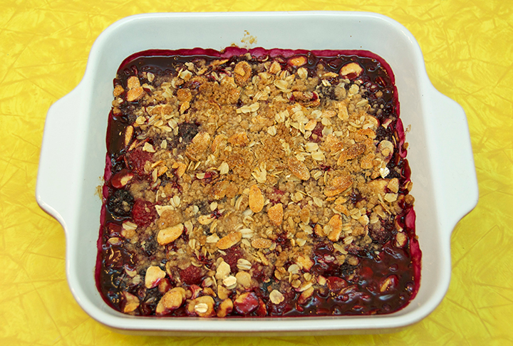 What could be sweeter than the long, sunny days of June? Why, berries, of course! The berries of early summer are bursting with flavor right now. This classic berry crisp is a mouth-watering way to showcase their crisp sweetness. This treat even makes it worthwhile to turn on your oven. Serve warm with vanilla ice cream for a delicious summery treat!